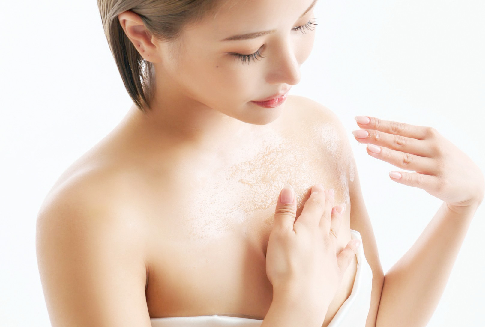 This product uses "sugar scrub," which has small particles that cause minimal friction on the skin. It can be used on the entire body. The sugar scrub also has a high moisturizing effect, and is rich in beauty ingredients such as hyaluronic acid*1 and collagen*2, leaving your skin feeling moisturized after treatment.